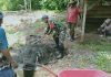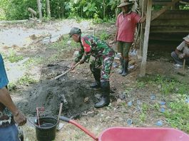 Babinsa Koramil 11/Pasongsoan Sertu Dadang Bantu Warga Bersihkan Kayu Bekas Rumah...