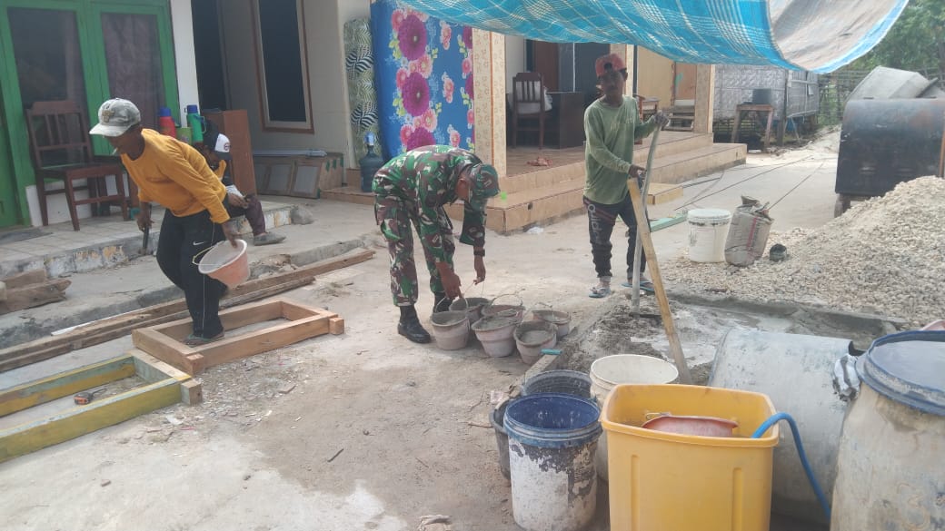 Dengan Semangat Angkat Campuran Semen Dan Pasir, Babinsa Bantu Pembangunan Rumah Warganya