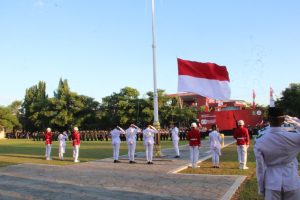Dandim 0827/Sumenep juga menyampaikan apresiasi kepada pasukan penurunan bendera yang telah melaksanakan tugas dengan baik.