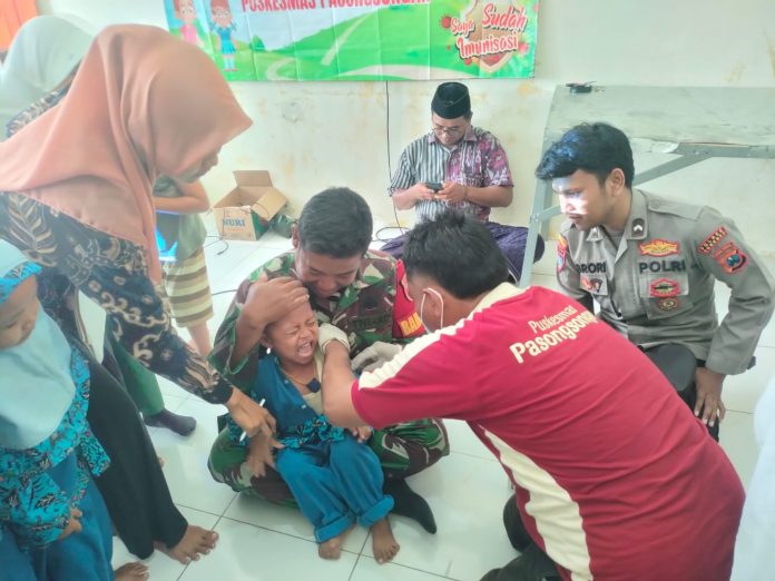 Sumenep, JNN.co.id – Babinsa Koramil 0827/11 Pasongsongan, Serda Suyono, turut mendampingi kegiatan sosialisasi sekaligus pemberian imunisasi Outbreak Response Immunization (ORI) campak di dua lembaga pendidikan, yakni RA Ar Raudhah dan MI Nurul Yakin, Desa Lebeng Barat, Kecamatan Pasongsongan, Kabupaten Sumenep, Jumat (29/8/2025).
