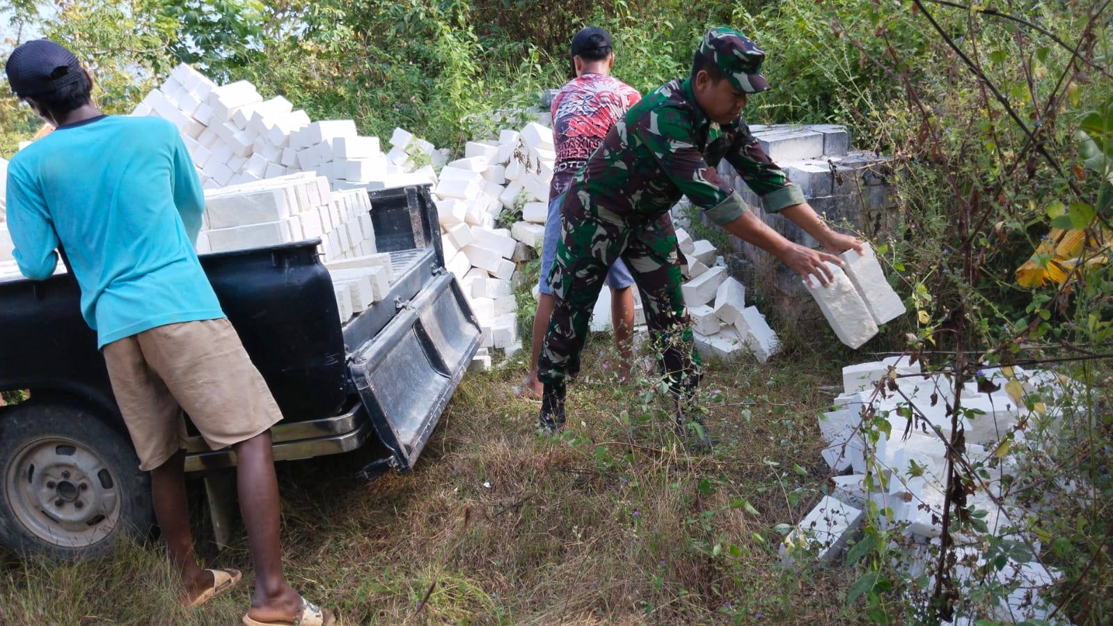 Sumenep, JNN.co.id – Dalam rangka meningkatkan kesejahteraan masyarakat dan memupuk rasa kebersamaan Babinsa Koramil 11/Pasongsongan Kodim 0827/Sumenep Seda Suyono bersama warga membantu menurunkan bata di Desa Pasongsongan Kecamatan Pasongsongan Kabupaten Sumenep, Minggu (14/9/2025).