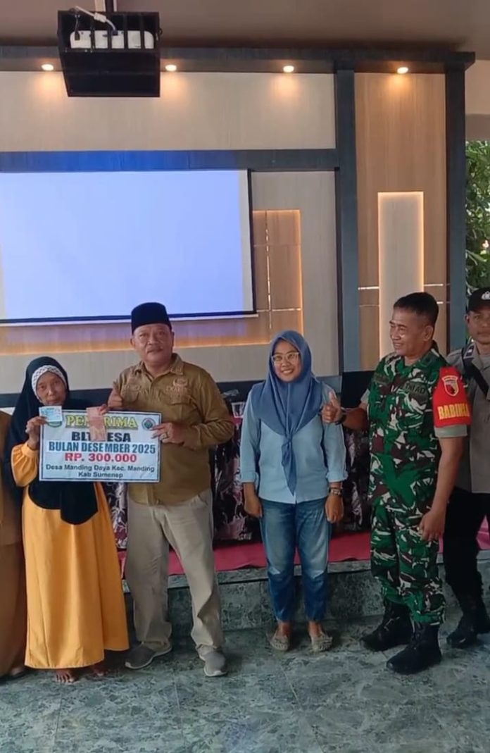 Sumenep, JNN.co.id – Babinsa Koramil 03/Manding Kodim 0827/Sumenep Pelda Setyo Hari menghadiri sekaligus lakukan pendampingan dan pengawalan kegiatan penyaluran bantuan langsung tunai dana desa (BLT DD) tahun 2025 oleh Pemerintah Desa Manding Daya, Kecamatan Manding, Kabupaten Sumenep . Selasa (14/10/2025)