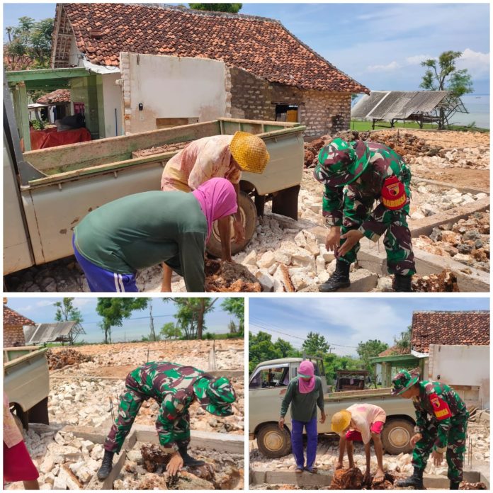 Koptu Agus ikut membantu dan memantau proses pembangunan sekaligus memberikan motivasi kepada warga agar tetap menjaga semangat gotong royong.
