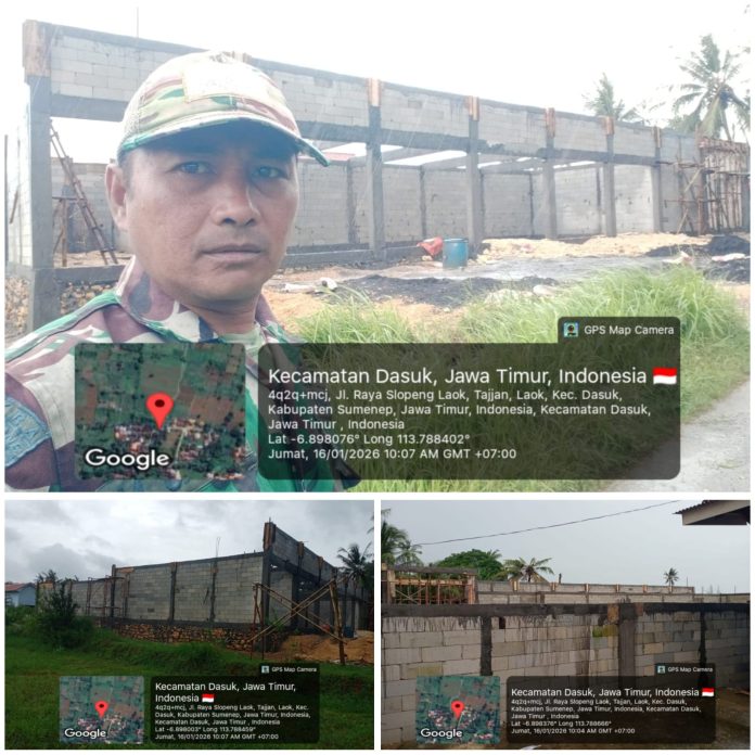 Pengawasan kegiatan pembangunan dilakukan oleh Babinsa Koramil 0827/12 Dasuk, Serka M. Umar, sebagai bentuk pendampingan terhadap program penguatan ekonomi desa.