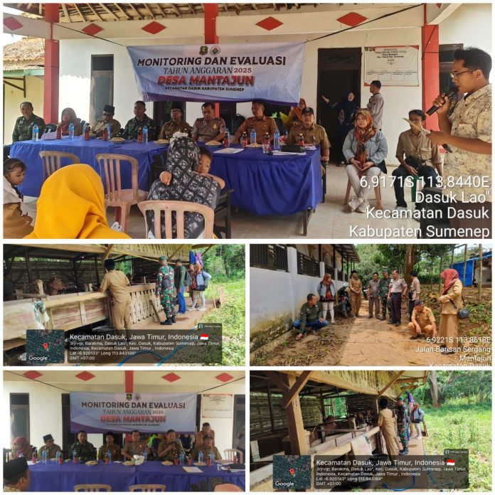 Sumenep, JNN.co.id – Pemerintah Kecamatan Dasuk bersama unsur Forkopimka melaksanakan Monitoring dan Evaluasi (Monev) Dana Desa (DD) dan Alokasi Dana Desa (ADD) Tahap II TA 2025 di Desa Mantajun, Kecamatan Dasuk, Kabupaten Sumenep, Selasa (20/1/2026).