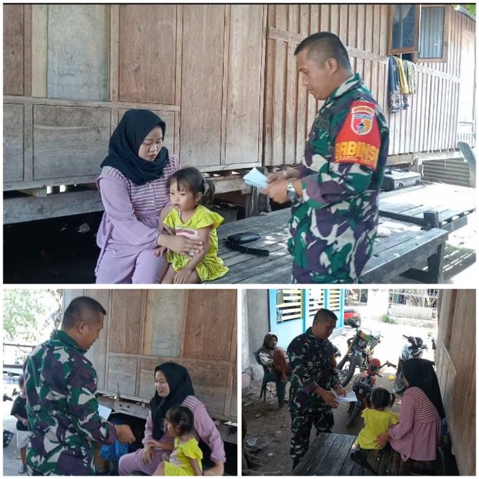 Dalam pelaksanaannya, Serda Jamaludin melakukan pemantauan kondisi kesehatan anak, berkoordinasi dengan pihak keluarga serta tenaga kesehatan setempat.