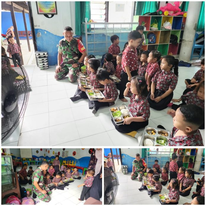 Sumenep, JNN.co.id – Babinsa Koramil 0827/01Kota, Serda Eko, melaksanakan kegiatan pendistribusian makanan bergizi gratis kepada anak anak (TK) di Desa Kebun Agung, Kecamatan Kota, Kabupaten Sumenep, Madura, Jawa Timur, Rabu (28/1/2026).