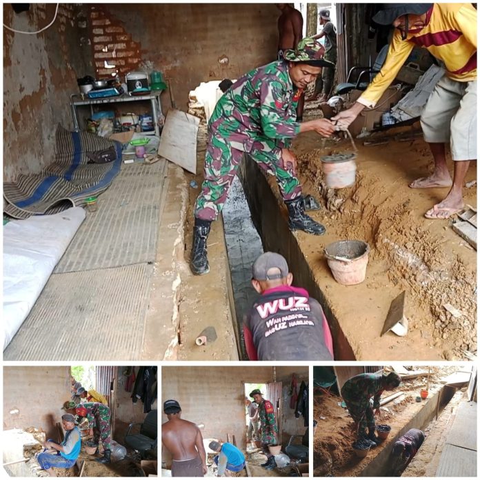 Babinsa Koramil Dasuk Bantu Warga Bangun Saluran Air di Desa Dasuk Laok