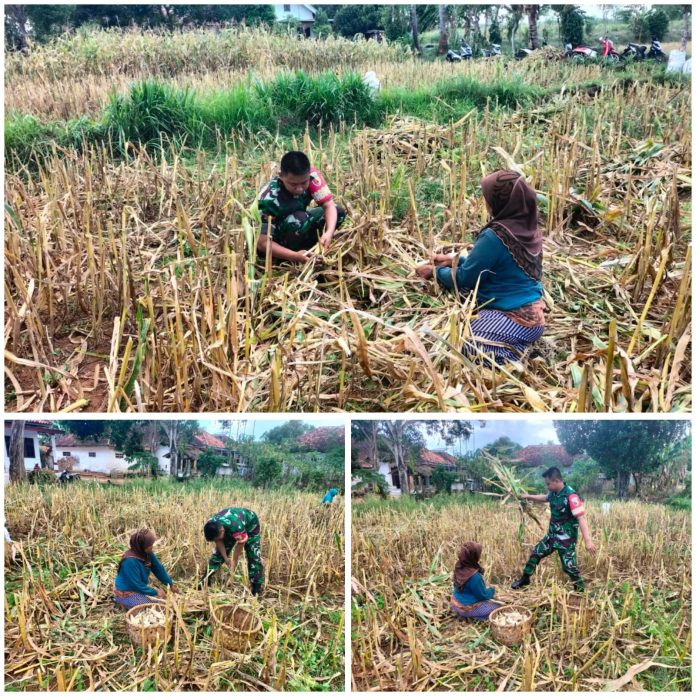 Babinsa Dampingi Petani Panen Jagung di Desa Mantajun