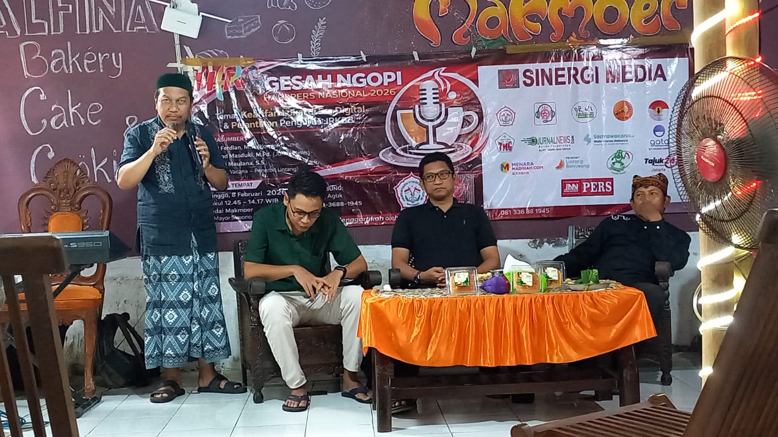 Ketua Perkumpulan Komunitas Gotongroyong Empat Lima, Aguk Wahyu Nuryadi, Pembina JRKBB sekaligus penyelenggara acara Gesah Bareng HPN 2026 bertema “Kearifan Lokal di Era Digital” ini dalam sambutannya minta agar keberadaan JRKBB tetap bermanfaat bagi masyarakat. Baik lewat siaran radio, talkshow podcast dan pendidikan masyarakat melalui Iklan Layanan Masyarakat. (Yeti Chotimah, Q.Nin/JN-SW)