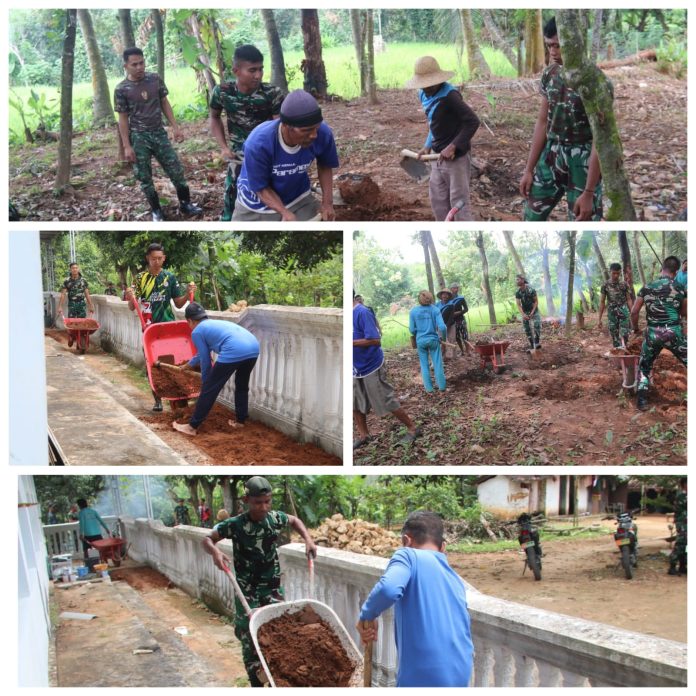Sumenep, JNN.co.id – Satgas TNI Manunggal Membangun Desa (TMMD) ke-127 Kodim 0827/Sumenep mempercepat renovasi Masjid Baitur Rahman di Dusun Karang, Desa Mandala, Kecamatan Rubaru, Kabupaten Sumenep, dengan melakukan penggalian dan pengurukan tanah untuk persiapan pemasangan keramik lantai.