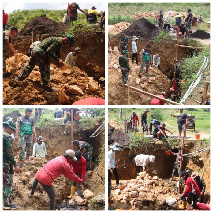 Sumenep, JNN.co.id – Program TNI Manunggal Membangun Desa (TMMD) ke-127 Tahun Anggaran 2026 Kodim 0827/Sumenep memasuki tahap pembuatan pondasi bawah tembok penahan tanah (TPT) atau plesengan di Dusun Karang, Desa Mandala, Kecamatan Rubaru, Kabupaten Sumenep.