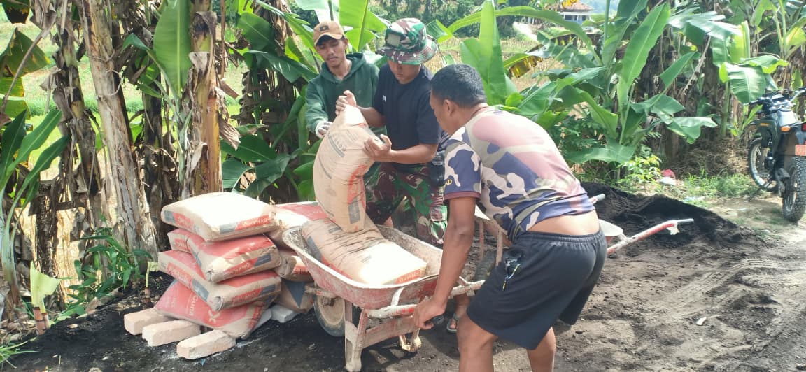 Sertu Agus Rianto mengatakan, dirinya bersama anggota lain fokus pada distribusi bahan cor agar proses pembangunan tidak terhambat.