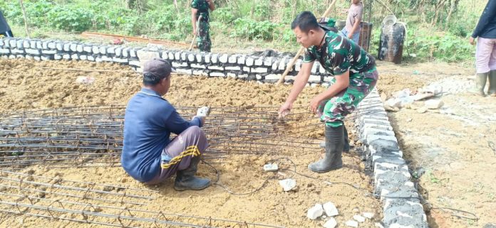 “Saya sangat berterima kasih kepada bapak TNI dan warga yang membantu merangkai besi hingga pembangunan rumah saya bisa berjalan,” katanya.