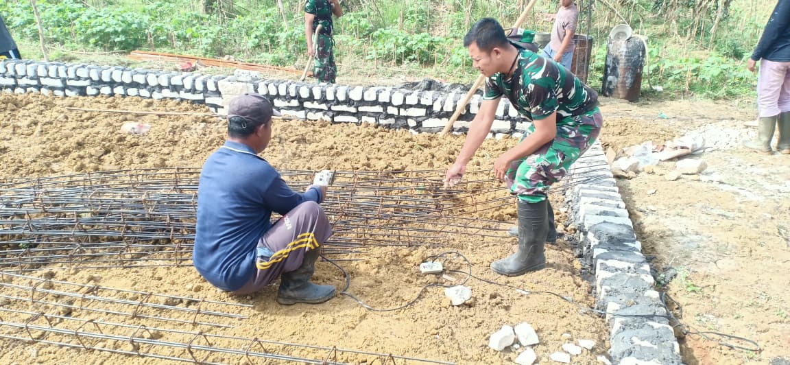 Praka Vivi Widi, anggota Satgas TMMD, menjelaskan bahwa perangkaian besi menjadi tahap krusial dalam proses pembangunan.