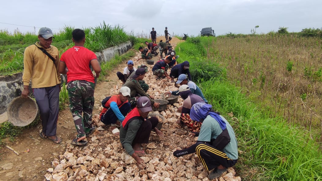 Sumenep, JNN.co.id – Satuan Tugas TNI Manunggal Membangun Desa (TMMD) ke-127 Kodim 0827/Sumenep menata batu sepanjang 1 kilometer di Dusun Karang, Desa Mandala, Kabupaten Sumenep, sebagai dasar pengaspalan jalan di wilayah tertinggal, terdepan, dan terluar (3T).