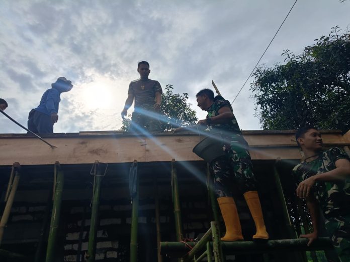 “Pengecoran dak ini memang butuh tenaga banyak. Karena itu kami kerjakan bersama warga agar lebih cepat selesai,” ujar Sertu Wahyu di lokasi, Sabtu (7/3/2026).