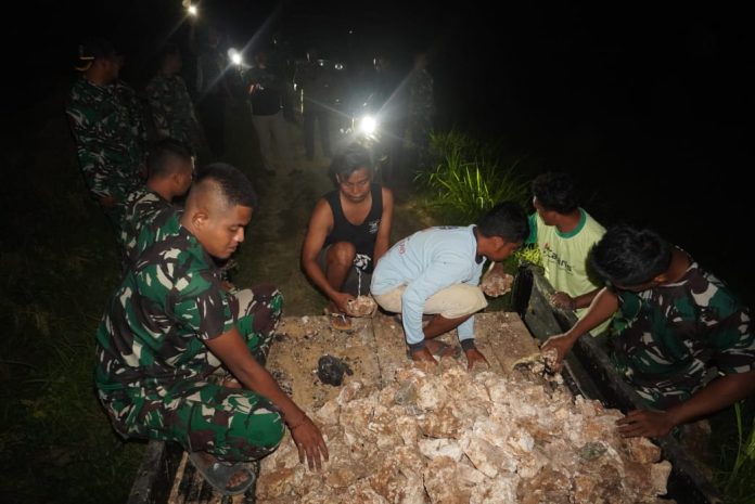 “Kami melihat masyarakat sangat terbuka untuk bekerja sama dengan TNI. Mereka bahkan rela meluangkan waktu pada malam hari untuk membantu pekerjaan ini. Hal tersebut menjadi energi positif bagi kami di lapangan,” kata Letkol Inf Citra Persada.
