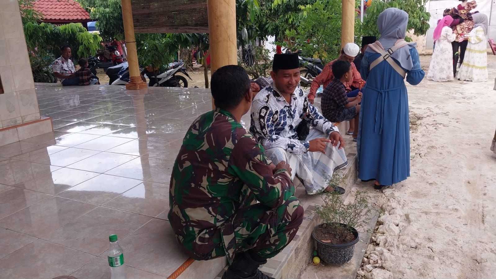 Dalam kunjungannya, Sertu Dadang disambut hangat oleh warga yang merasa senang atas perhatian dan kedekatan Babinsa di tengah momen lebaran.
