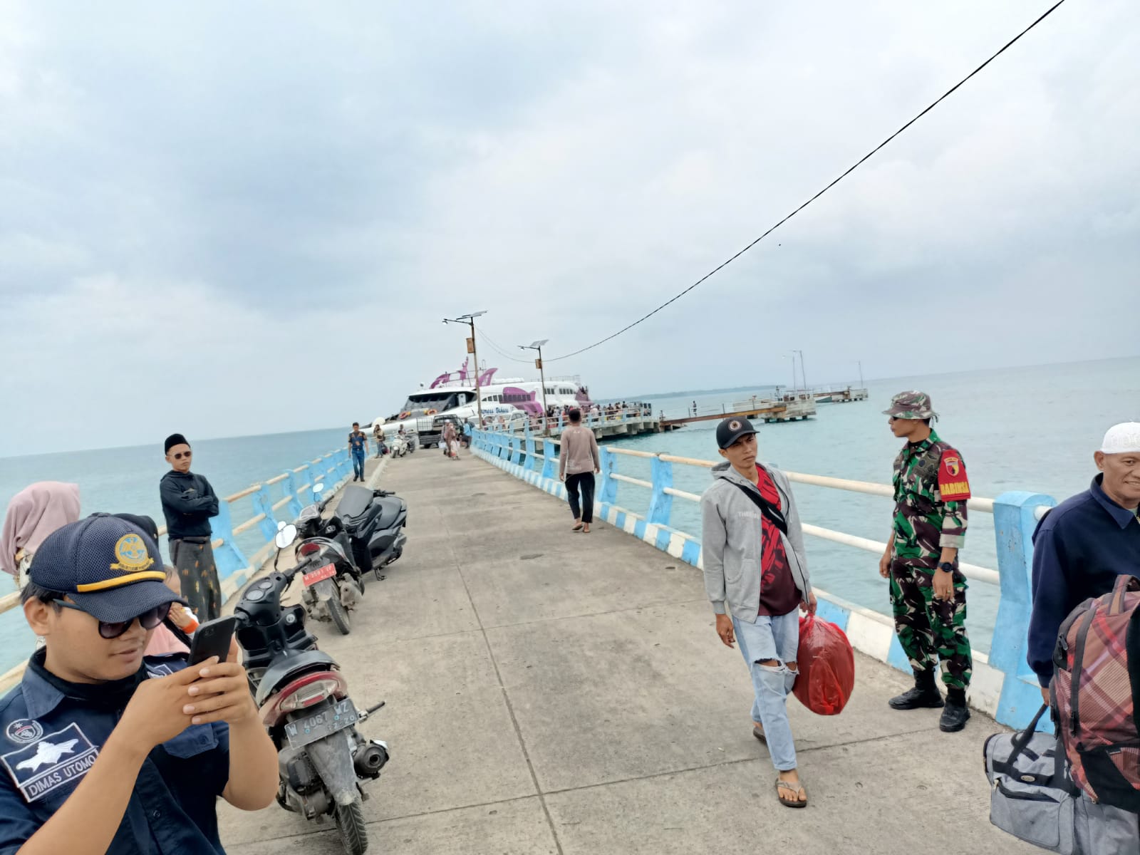 Mengantisipasi kepadatan tersebut, Babinsa bersama petugas terkait sigap mengatur arus penumpang, menjaga ketertiban antrean, hingga memastikan proses naik turun kapal berjalan aman dan lancar.