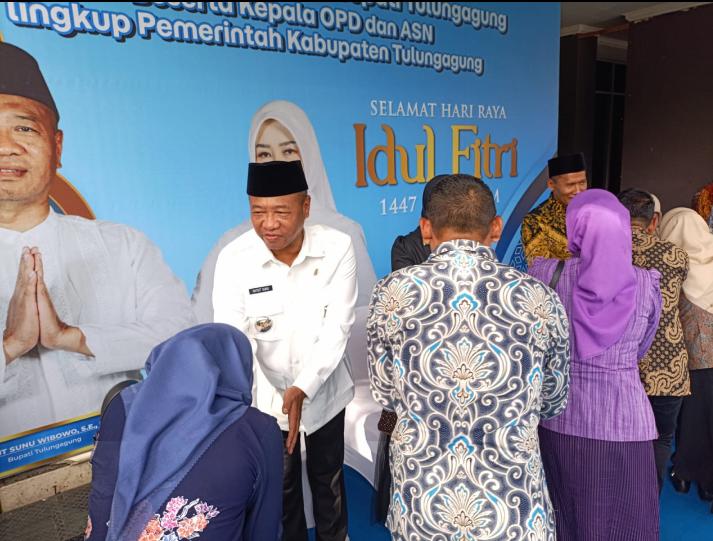 Tulungagung, JNN.co.id – Momentum Halalbihalal Idul Fitri 1447 H/2026 M di lingkungan Pemerintah Kabupaten Tulungagung diminta tidak sekadar menjadi kegiatan seremonial. Bupati Tulungagung, Gatut Sunu Wibowo, menegaskan momen ini harus dimanfaatkan untuk meningkatkan kinerja, khususnya dalam pembangunan infrastruktur.