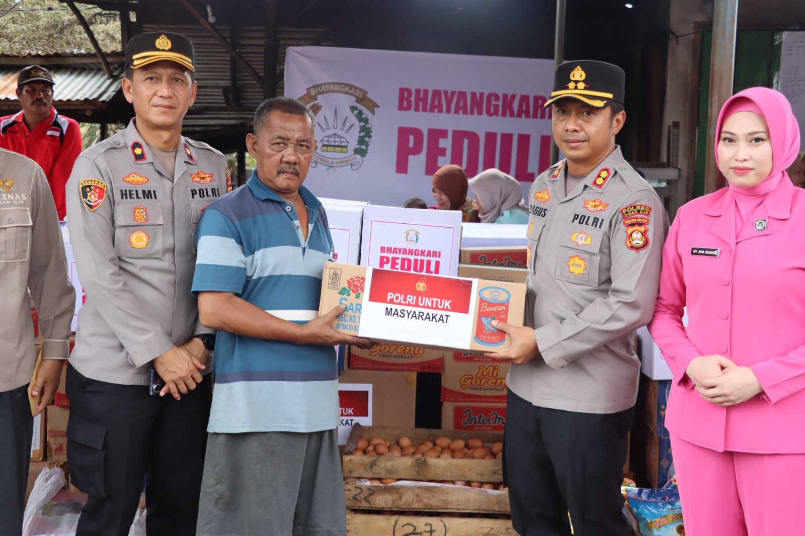 Sebagai bentuk respons cepat, Polres Ogan Ilir menyalurkan bantuan logistik berupa 500 kilogram beras, 30 dus mie instan, 40 dus air mineral, 500 kaleng sarden, minyak goreng, telur, serta kebutuhan khusus seperti susu balita, susu ibu hamil, popok anak, dan pakaian layak pakai.