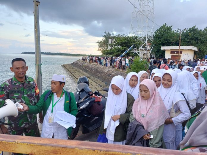 Terlihat para santri dengan tertib mengikuti arahan petugas pelabuhan dan Babinsa saat proses naik ke kapal. Orang tua yang mengantar pun merasa terbantu dengan adanya kehadiran aparat TNI yang turut mengawasi dan mengatur jalannya kegiatan.
