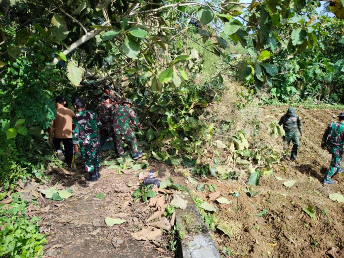 Aksi Gotong Royong, Koramil Ambunten Bersihkan Lahan Jembatan Garuda