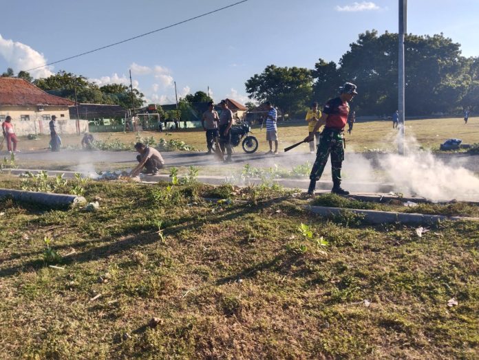 Sumenep, JNN.co.id – Dalam rangka mendukung gerakan Indonesia ASRI (Aman, Sehat, Rapi, dan Indah), Babinsa Koramil 21/Ra’as Kodim 0827/Sumenep melaksanakan kegiatan karya bakti berupa pembersihan lingkungan di wilayah Kecamatan Ra’as, Kabupaten Sumenep.Jumat (16/4).