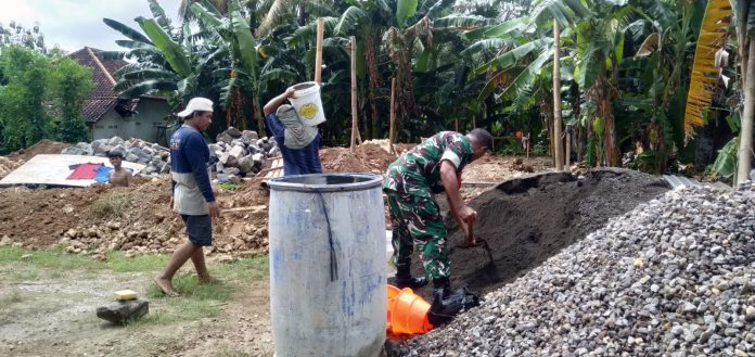 Babinsa Gapura Bantu Pengecoran Pondasi Rumah Warga