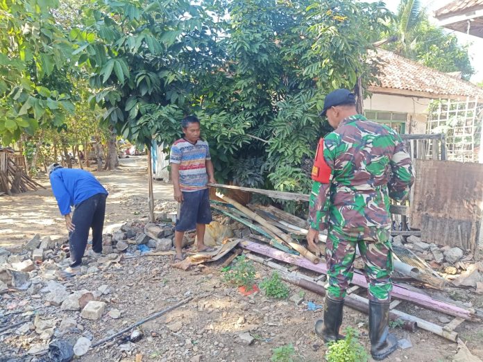 Babinsa Koramil 11/Pasongsoan Sertu Dadang Bantu Warga Bersihkan Kayu Bekas Rumah di Desa Perancak