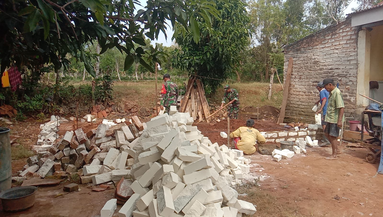 Percepatan Pembangunan Di Sela Dinas, Babinsa Bangun Rumah Warganya