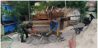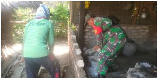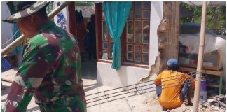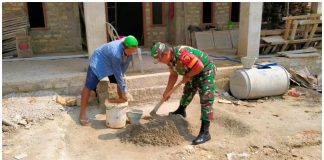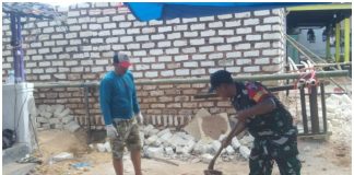 Babinsa Kepulauan Sapudi Bantu Warga Pasang Batako untuk Rehab Rumah