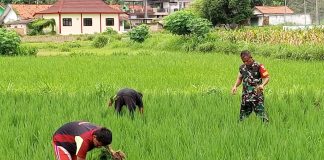 Maksimalkan Pertumbuhan Tanaman Padi, Babinsa Koramil 05/Lenteng, Kopka Suryadi Bantu Petani...