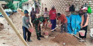 Babinsa dan Warga Gotong Royong Bangun Pondasi Rumah Warga Kurang Mampu