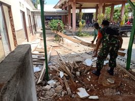 Renovasi Balai Desa, Babinsa Bantu Ringankan Pekerjaan Warganya