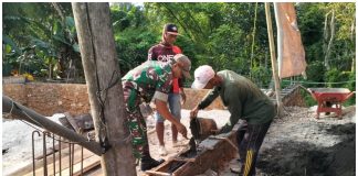 Gotong Royong, Babinsa Bantu Pembangunan Rumah Warga