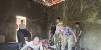Babinsa Batang Batang Gotong Royong Bantu Pengecoran Rumah Warga di Desa...