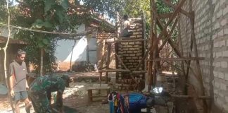 Penuh Semangat Di Hari Minggu, Babinsa Sempatkan Bantu Pembangunan Rumah Warganya