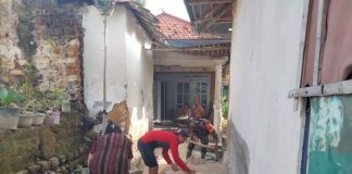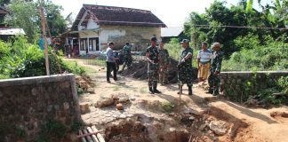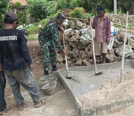 Babinsa Lenteng Bantu Warga Plester Dinding Rumah di Banaresep Barat
