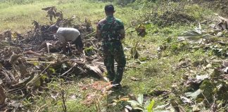 Babinsa Koramil 06/Saronggi Kodim 0827/Sumenep Laksanakan Karya Bakti Pembersihan Lahan Pertanian