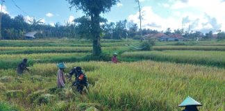Tingkatan Swasembada Pangan, Babinsa Lakukan Panen Padi di Arjasa
