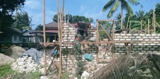 Tiada Kenal Lelah, Anggota Koramil 0827/16 Gapura Bantu Bangun Rumah Warga