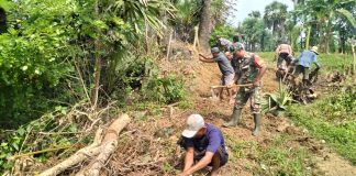 Babinsa Koramil 14/Batang Batang Bersama Warga Gotong Royong Membuat Jalan Usaha...