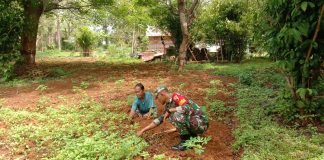 Babinsa Ramil 0827/22 Masalembu Bantu Warga Bersihkan Kebun Singkong
