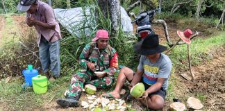 Babinsa Raas Turun Sawah, Genjot Produksi Jagung Petani Kepulauan