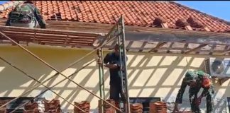 Babinsa Raas Ringankan Beban Warga, Ikut Turunkan Genteng Rumah