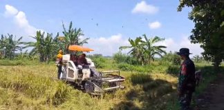 Babinsa Koramil 0827/16 Gapura Pantau Panen Padi di Desa Panagan