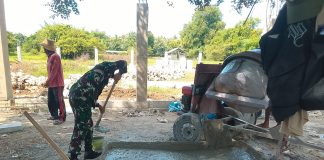 Semangat Tanpa Henti, Babinsa Libatkan Diri Bantu Pengecoran Bersama Warganya