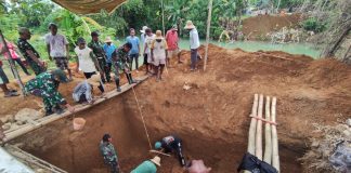 Gotong Royong Babinsa dan Warga Percepat Pondasi Jembatan Gantung di Ambunten